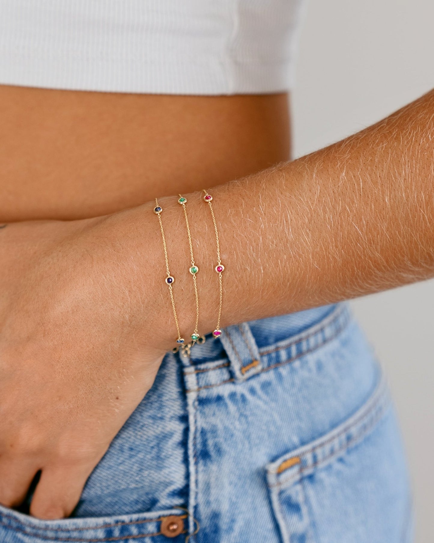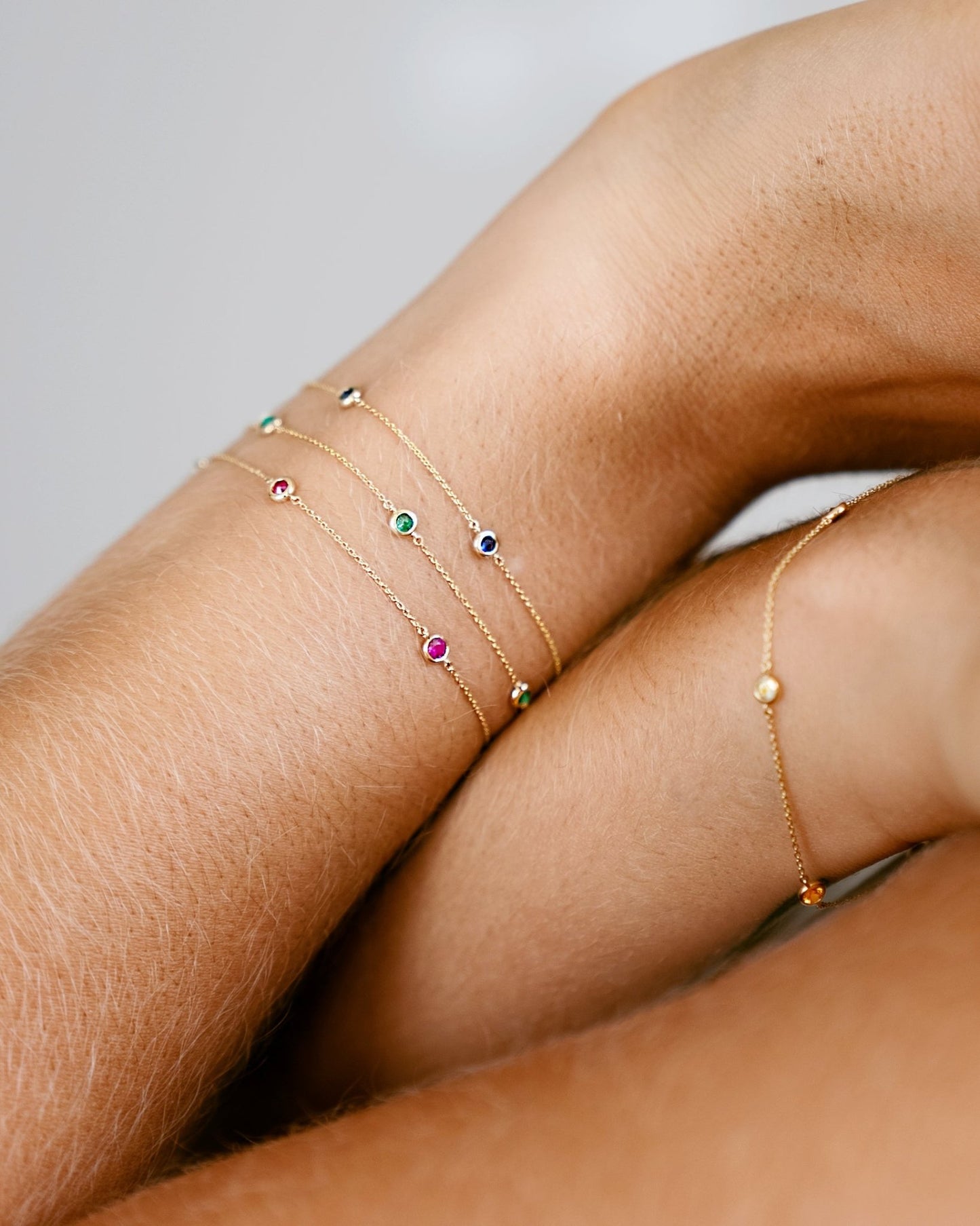 Ein LINE COLOURS 5 Stone Armband ist die perfekte Kombination aus Eleganz und Unvergesslichkeit! Mit den 5 Edelsteinen aus Smaragd, Rubin oder Saphir, wird es dich in eine Welt von Farben, Glamour und Charme voller majestätischer Schönheit und voller Fröhlichkeit versetzen.