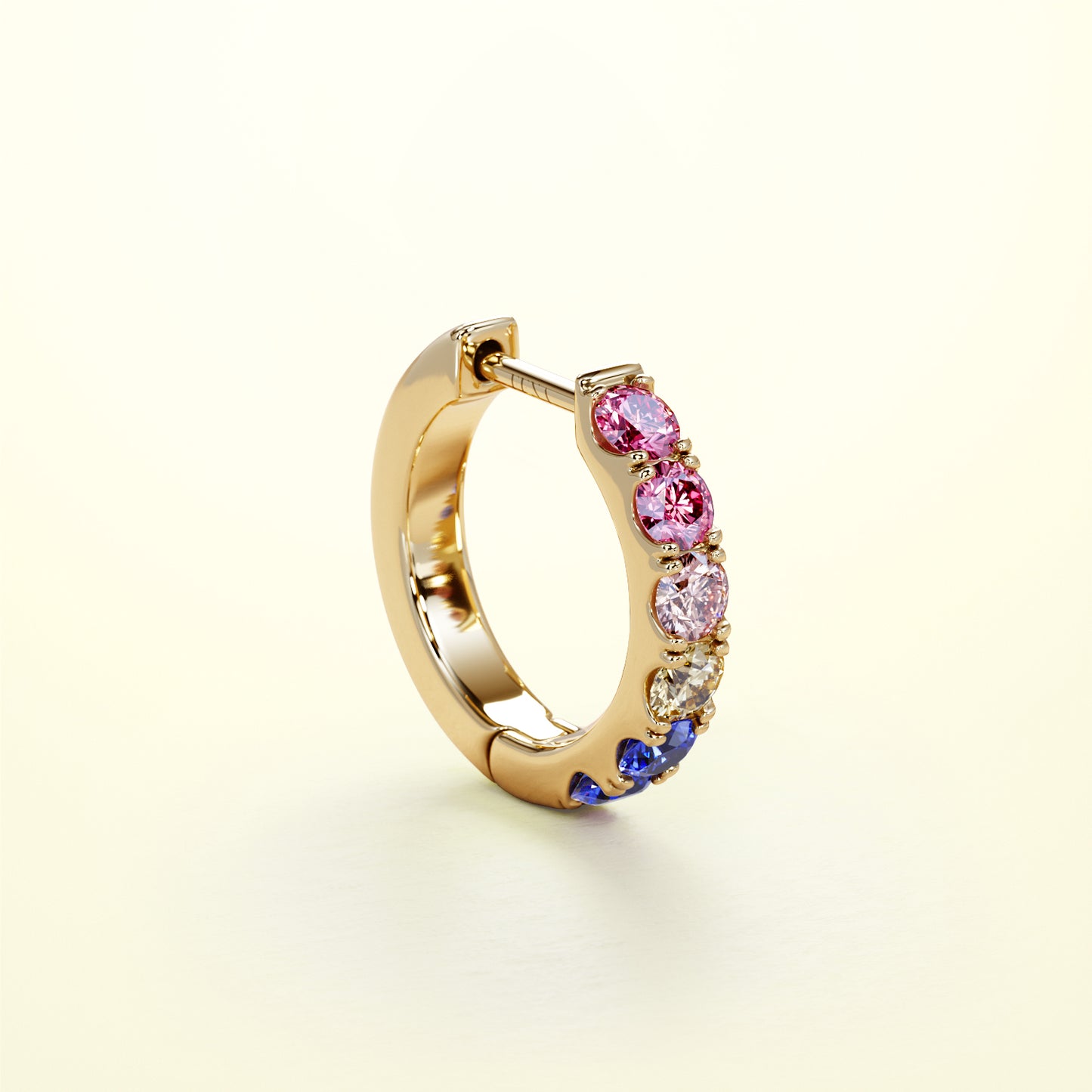 Die farbenfrohen Rainbow Saphire und das nachhaltige Gold unserer HOOP Creolen bringen deinen schönsten Sommererinnerungen in deinen Alltag. Unsere handgefertigten Creolen sind in 12mm und 16mm Durchmesser und massiven 18 karätigem Rosé-, Weiß- und Gelbgold erhältlich.