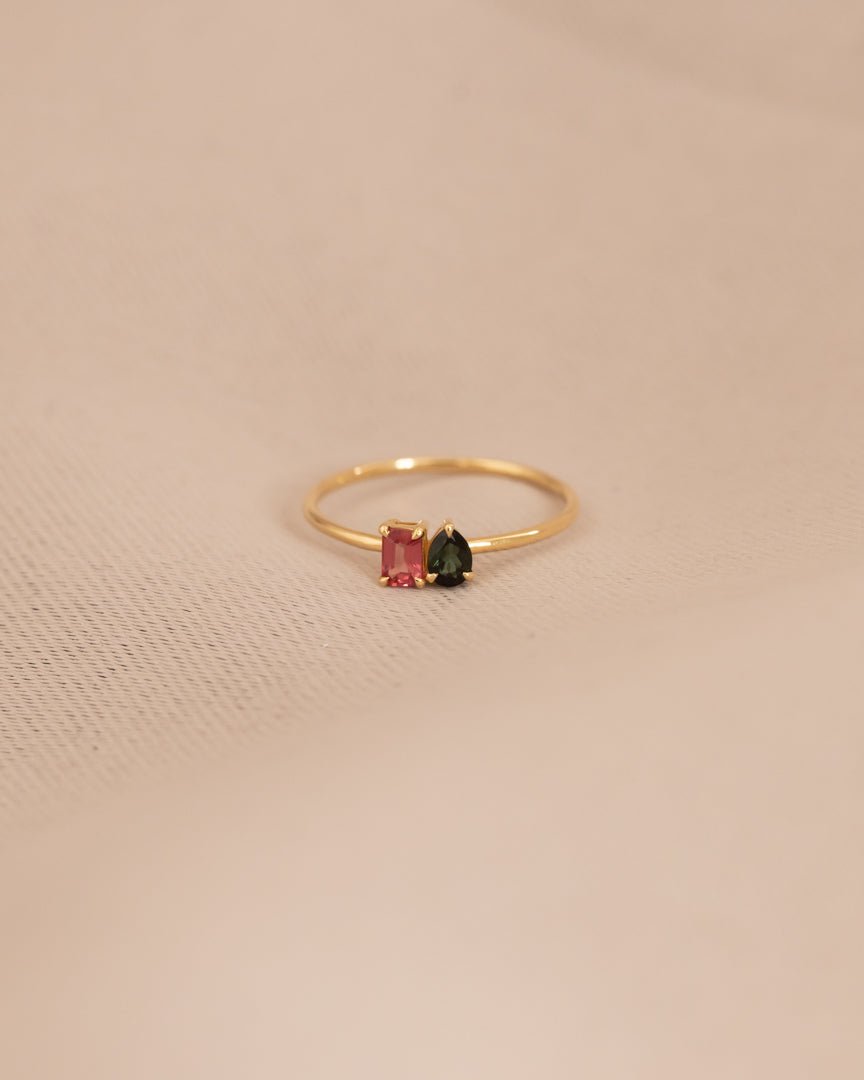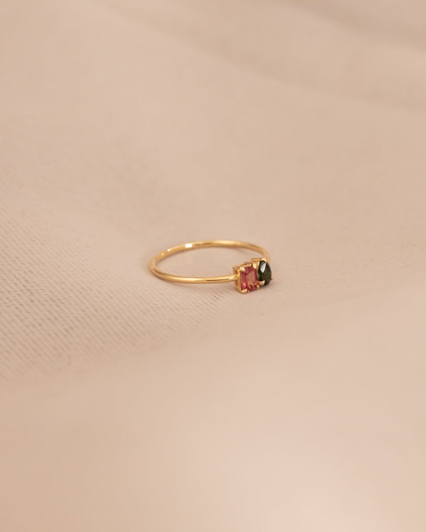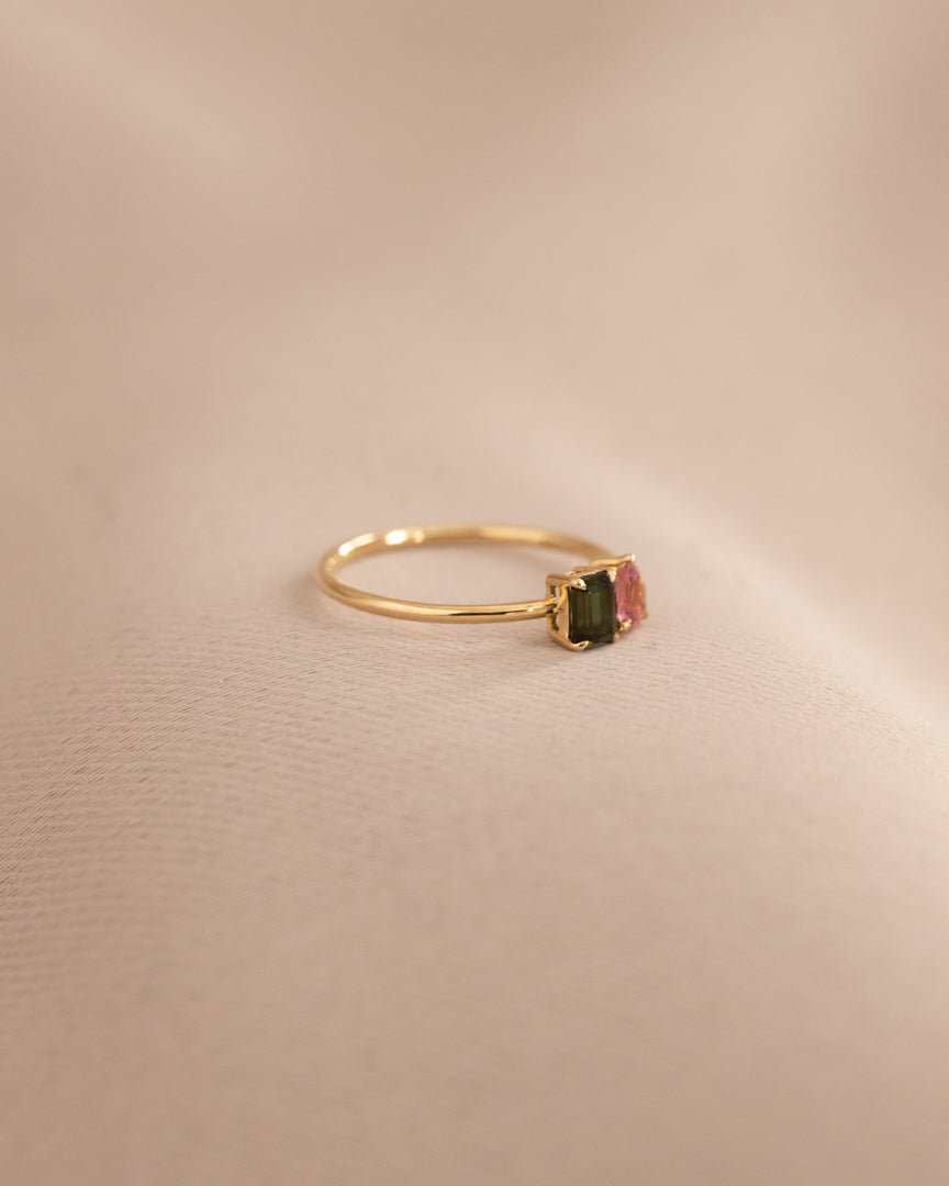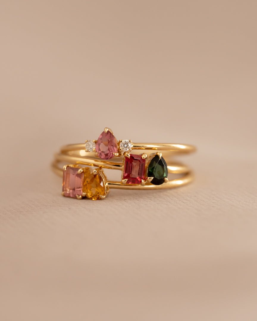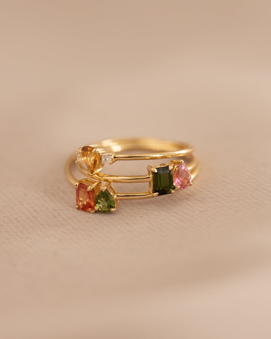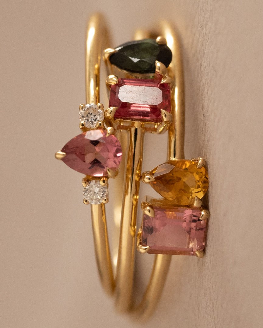 Inspiriert von der bezaubernden Welt der Turmaline ist unser LINE COLOURS Twin Ring eine Hommage an Farbe, Freude und die Schönheit der Natur. Jedes Stück spiegelt die Farbtöne dieser kostbaren Edelsteine wider und schafft so ein lebendiges und zartes Ensemble.
